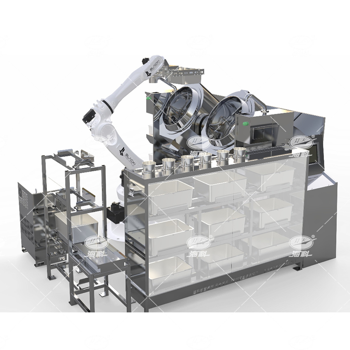 可用于集體用餐的食堂(機關、院校、工廠、中央廚房配餐中心等大型食堂)等場景量身打造的烹飪系統(tǒng),主要由空盆/成品智能庫、凈菜/調理肉/調料智能庫、工控上位機SaaS軟件系統(tǒng)、數(shù)字化智能炒菜鍋以及工業(yè)級機器人組成,工控上位機對接云端,接收并統(tǒng)一向各模塊發(fā)出指令。